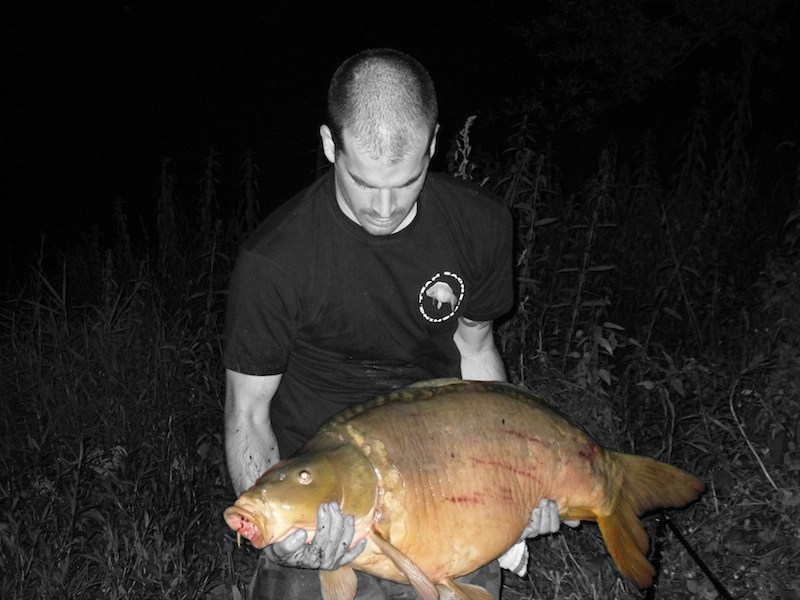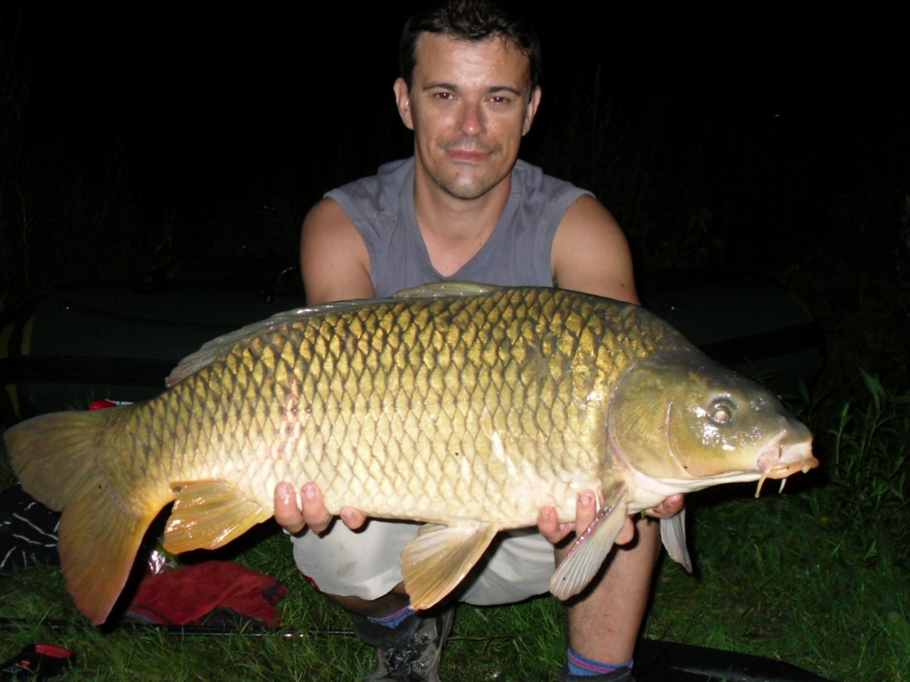 Vers minuit une grosse déroule sur une de mes cannes me fait sauter du bed. Après une bonne vingtaine de minutes de combat on aperçoit enfin une jolie miroir un peu abimée. David la glisse dans l 'épuisette, et me dit oula c'est lourd !!!!!